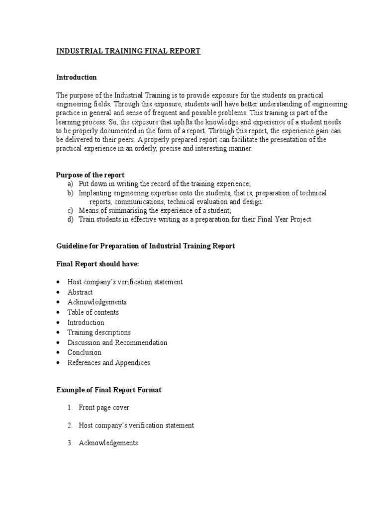 Industrial Training Report Example Pdf - The final industrial training (it) report is the final step to completing your industrial training requirements for an accredited unsw engineering degree.