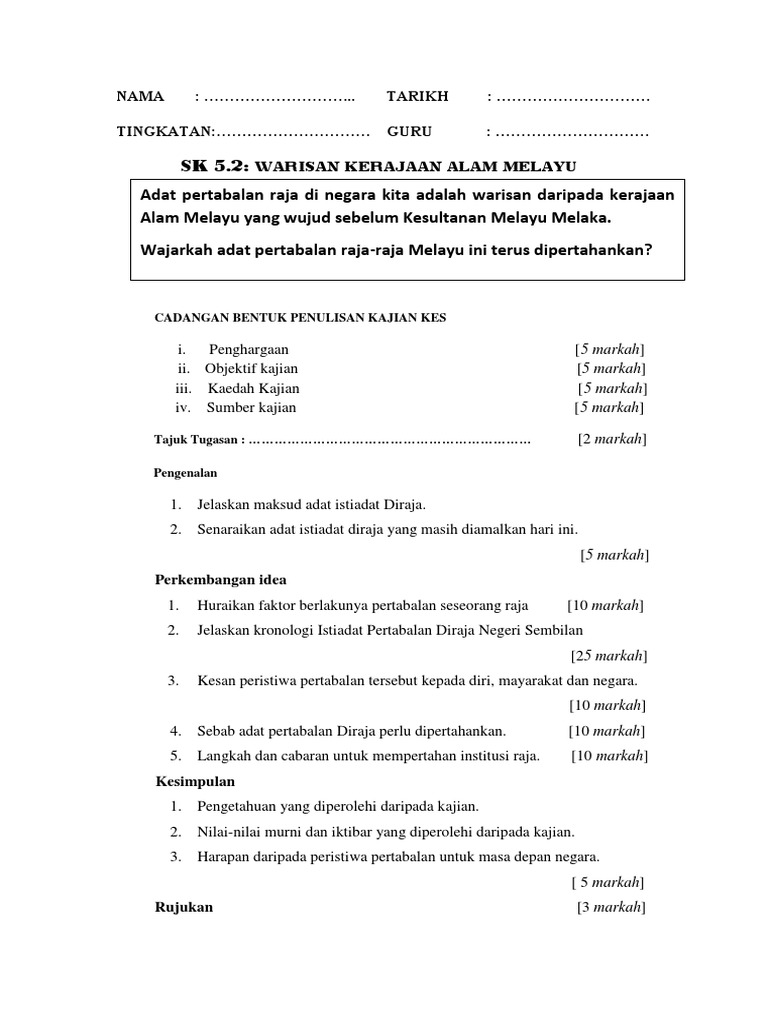Kajian Kes Sejarah Tingkatan 2 2018 Docx Smk Taman Bukit Maluri Kerja Kursus Tingkatan 2 2018 Sejarah Nama Calon No Kad Pengenalan Tingkatan Tarikh Course Hero from www.coursehero.com Rakyat pada era kesultanan melayu melaka. (bagaimana lahir penemuan baru ini dan apakah kaedah penyelidikan sejarah yang digunakan). Melalui sumber internet, kajian mengenai kesultanan melayu melaka dapat diketahui dengan lebih mendalam serta dapat dipelajari daripada pelbagai aspek dan sudut. So please help us by uploading 1 new document or like us to download Zaman kesultanan melayu melaka adalah antara institusi kesultanan melayu yang terawal di tanah melayu dengan kewujudan kesultanan ini menandakan bermulanya satu sistem politik melayu yang dikenali sebagai kerajaan.sebelum melaka ditubuhkan beberapa buah kerajaan melayu telah muncul. Tajuk kajian kes :melaka merupakan sebuah negeri yang boleh dibanggakan. 6) klik submit my order. Bagi kaedah kajian pula, kaedah penyelidikan menggunakan sumber internet turut digunakan dalam menghasilkan kajian ini.