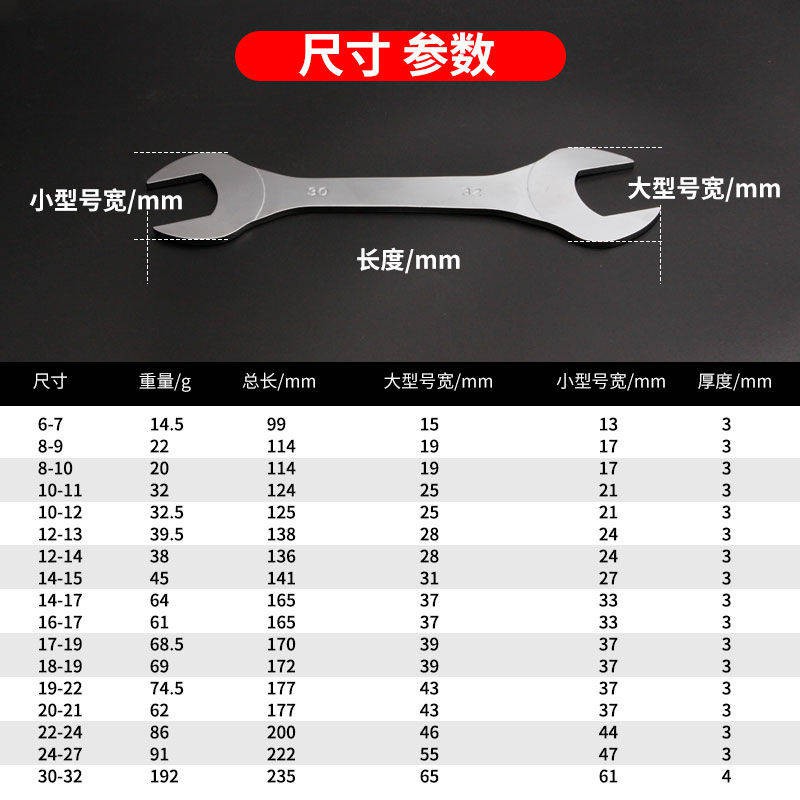 Saiznya ditentukan oleh jarak antara dua rahangnya dan diukur dalam ukuran mm.