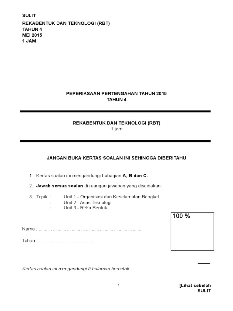 Soalan Rbt Tahun 4 - RPH Reka Bentuk dan Teknologi (RBT) Tahun 4 : Add to my workbooks (9) download file pdf. Soalan rbt tahun 6 surat kerja g. Supaya dapat mengelakkan sebarang kemalangan atau kecederaan. Modul pengajaran rbt tahun 4 (terbaru) dskp. View ujian akhir tahun 4 rbt.docx from engl english co at san jose state university. Soalan rbt tahun 4 soalan rbt tahun 4 (pksr 1) 1.organisasi